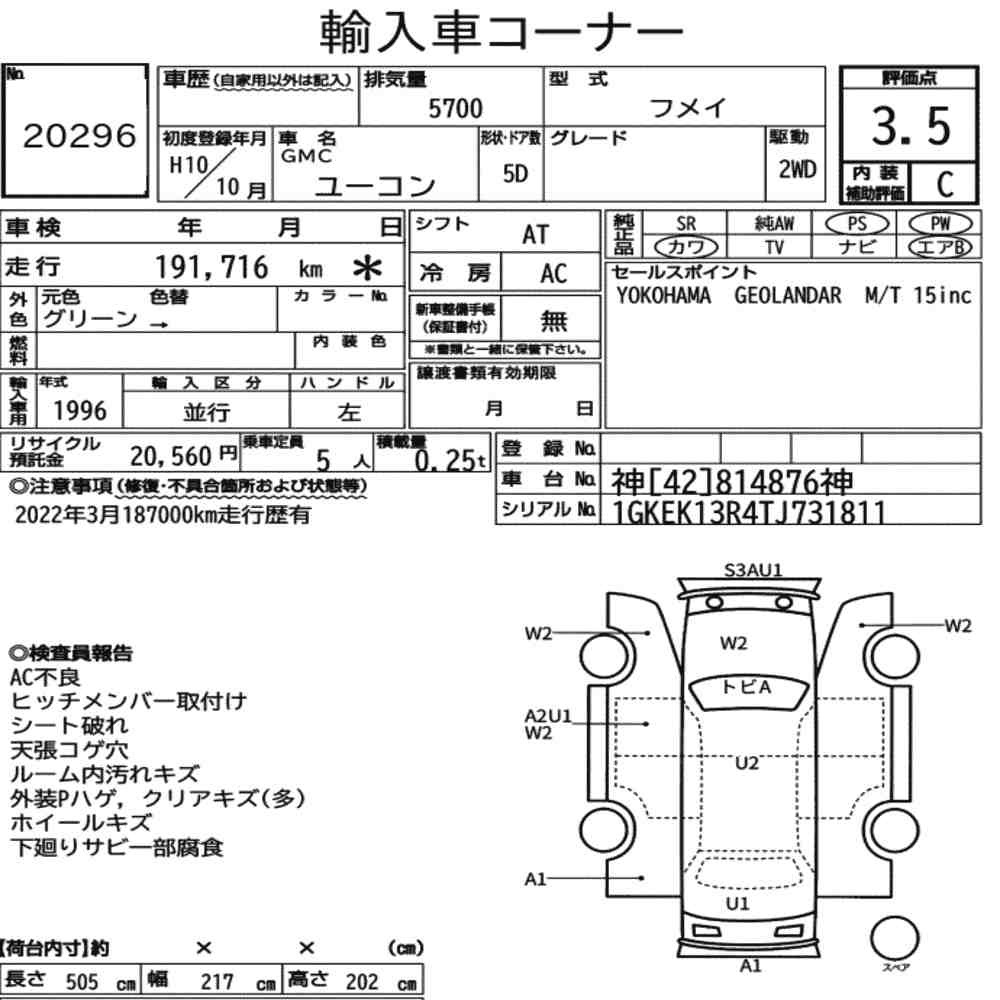 pa_mileage icon192.000pa_location iconNagoyapa_capacity icon5700lot icon20296pa_rank icon3.5pa_gearbox iconAT