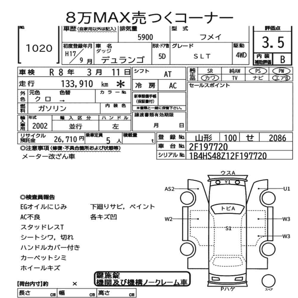 pa_mileage icon134.000pa_location iconTohokupa_capacity icon5900lot icon1020pa_rank icon3.5pa_gearbox iconAT