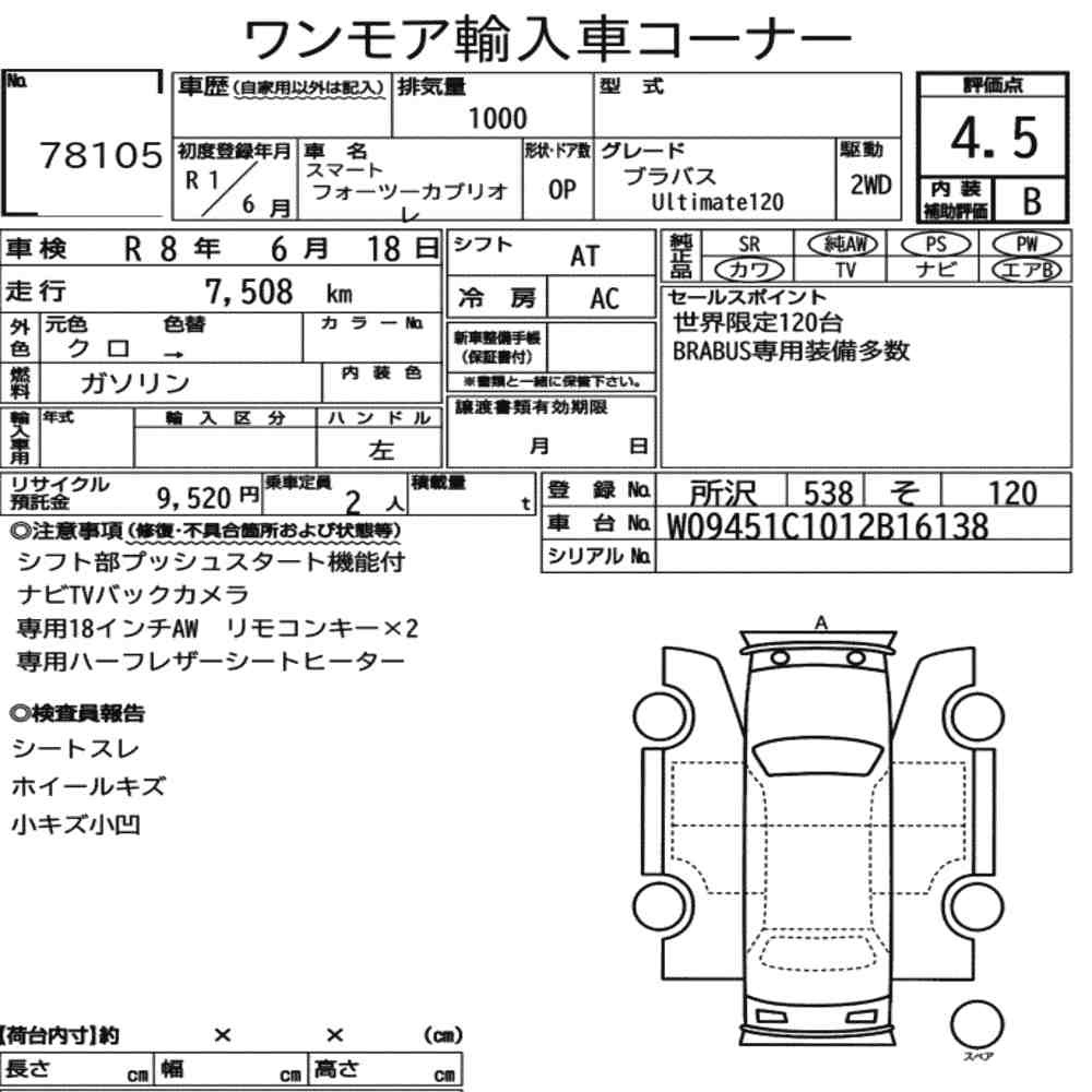 pa_mileage icon8.000pa_location iconTokyopa_capacity icon1000lot icon78105pa_rank icon4.5pa_gearbox iconAT